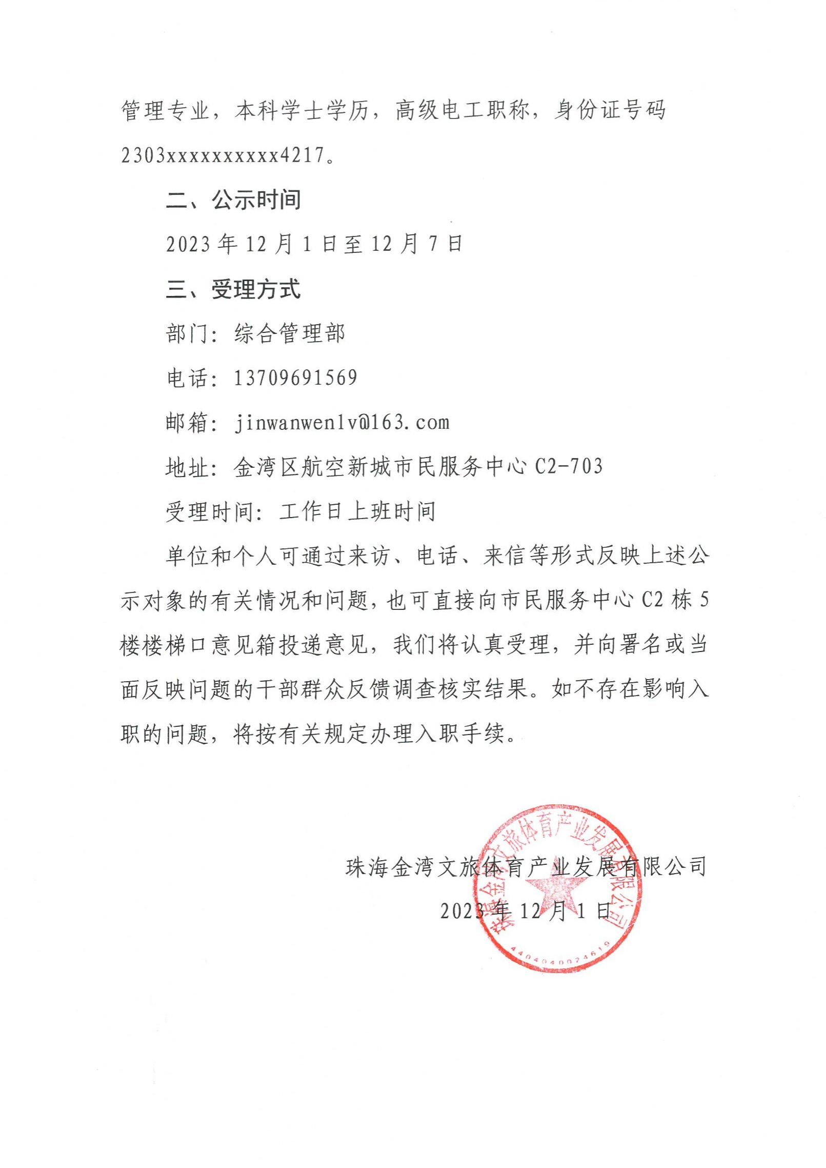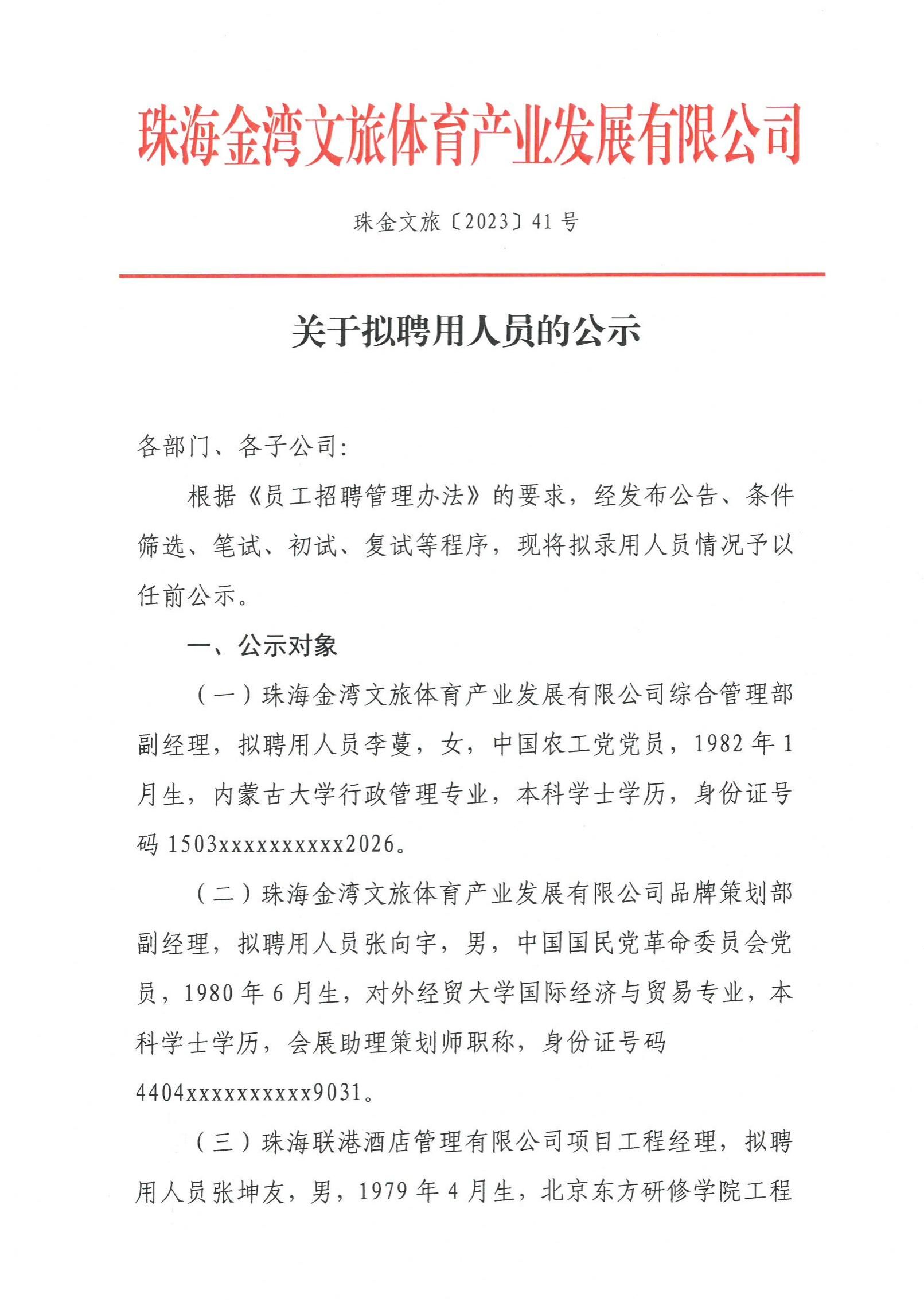 珠金文旅〔2023〕41號 關(guān)于擬聘用人員的公示