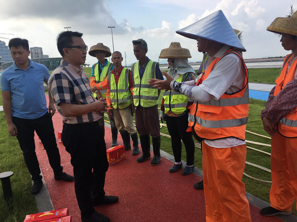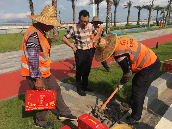 慰問組一行先后來到金山公園、金灣路,分別慰問園林綠化、市政道路管養(yǎng)、水利等一線作業(yè)員工。“你們辛苦了,感謝你們?yōu)槲拿鞒鞘懈冻龅男燎诤顾团Α保u湘斌董事長對他們?yōu)榫S護城市環(huán)境衛(wèi)生作出的努力表示感謝,進一步了解了員工的工作情況及困難,并再次叮囑他們在烈日和高溫下作業(yè)要采取有效防暑降溫和安全生產(chǎn)保障措施,以健康的身體和愉悅的心情投入到工作中。