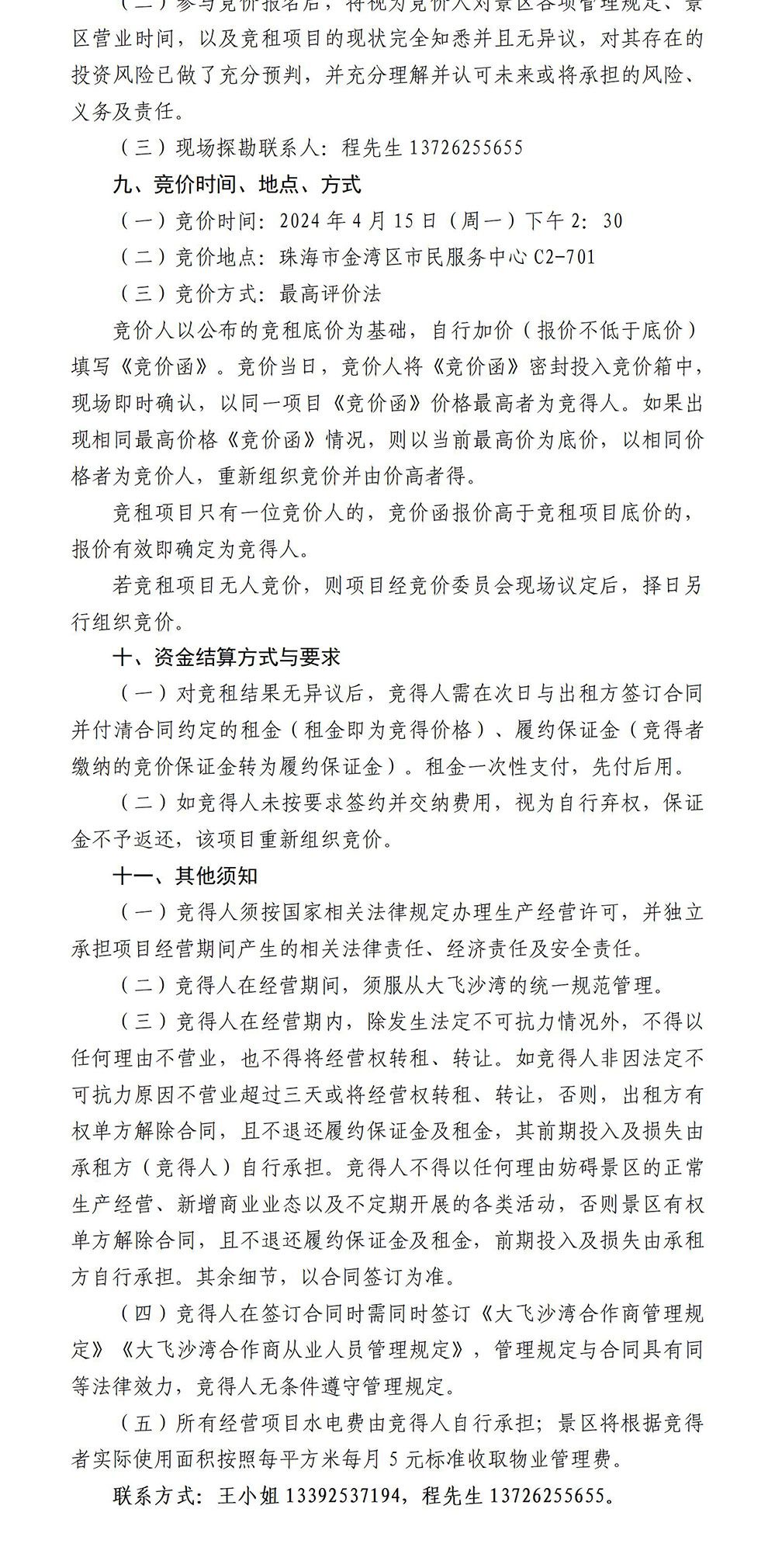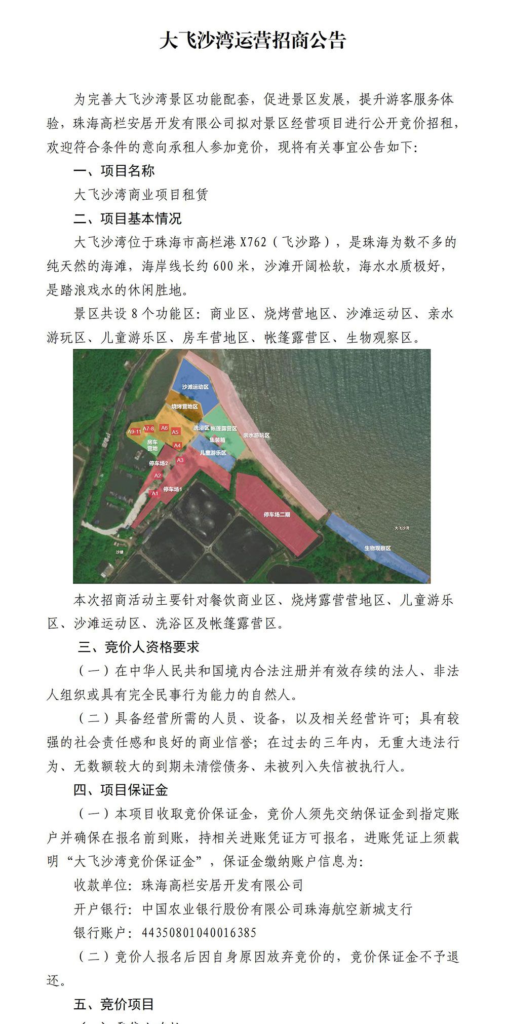 大飛沙灣運營招商公告