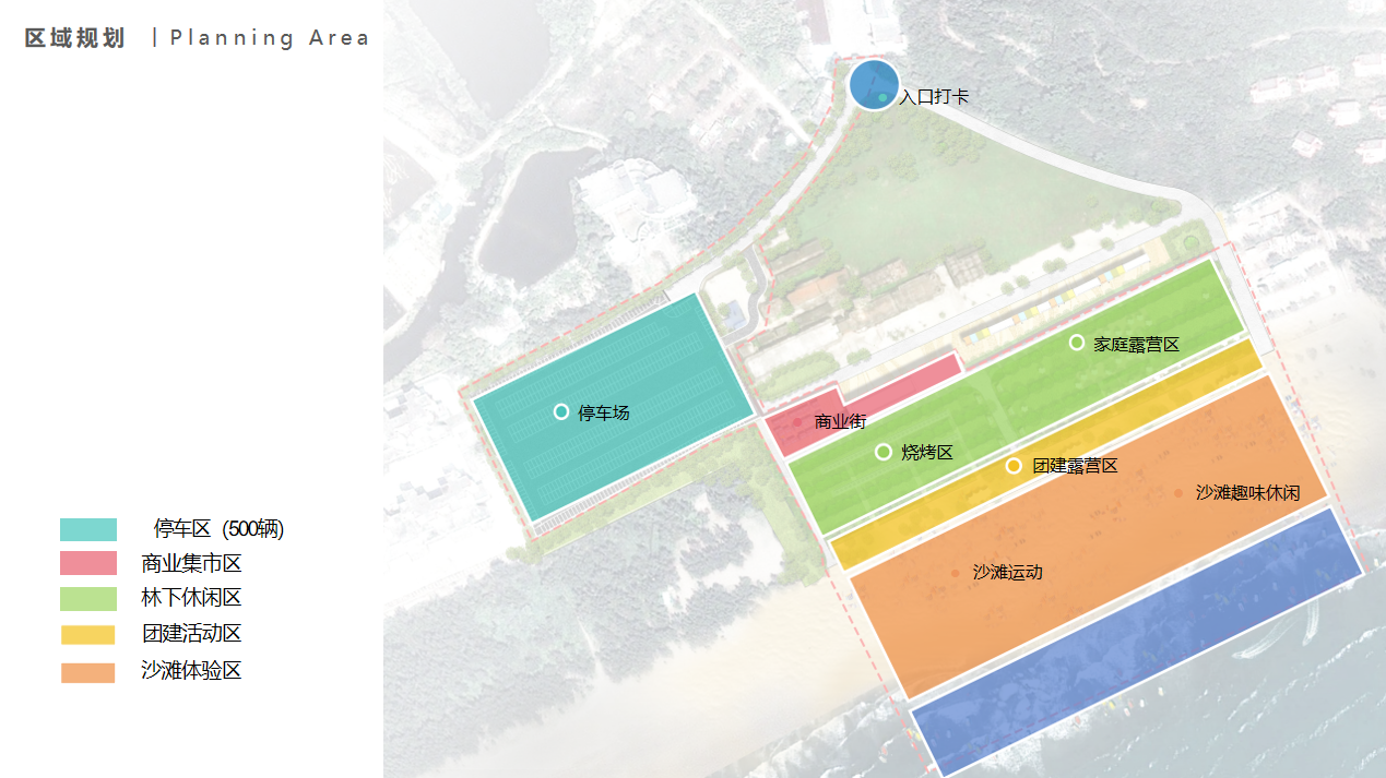 營地共設(shè)4個功能區(qū),商業(yè)集市區(qū)、林下休閑區(qū)、團建活動區(qū)、沙灘體驗區(qū)(具體功能分區(qū)詳見附件一)。本次招商活動主要針對商業(yè)區(qū)。