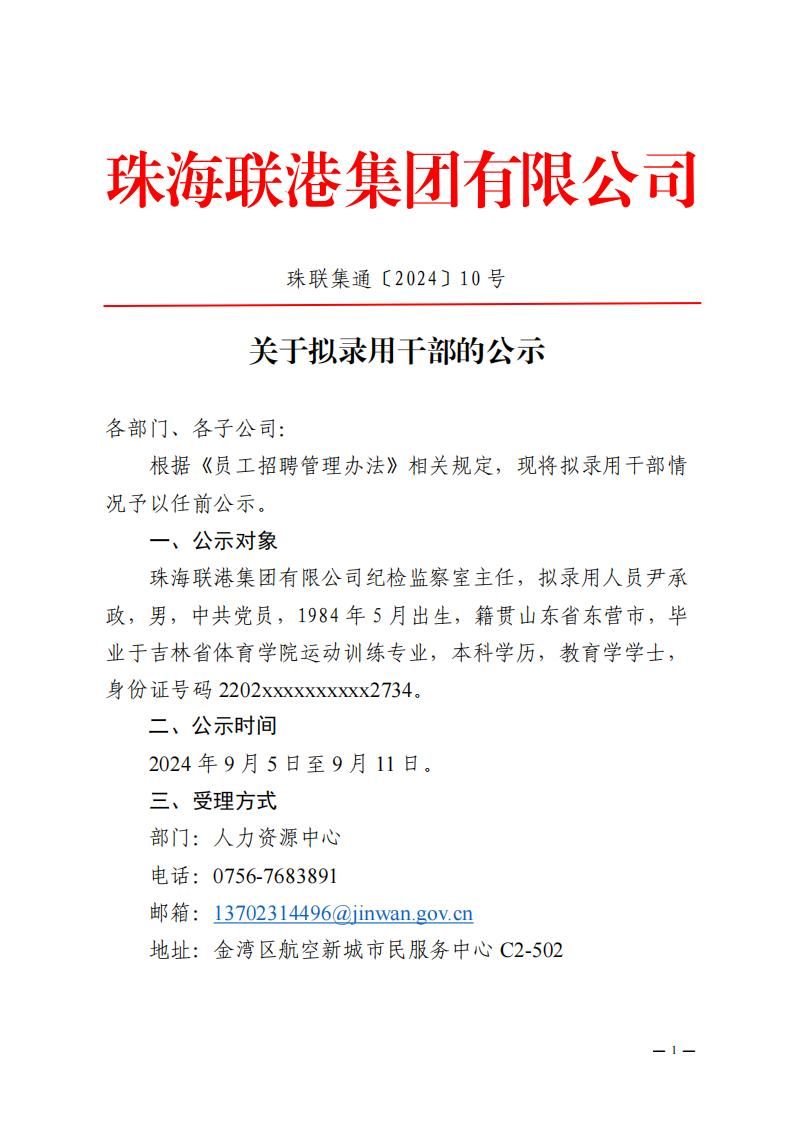 珠聯(lián)集通〔2024〕10號(hào) 關(guān)于擬錄用干部的公示