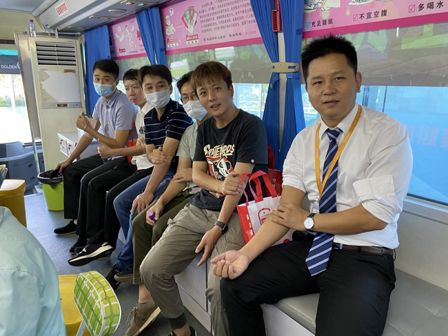 在金灣區(qū)市民服務(wù)中心A2棟一樓大廳,大家在工作人員的指引下,依次進(jìn)行登記填表、測(cè)量血壓、抽血化驗(yàn)等,整個(gè)流程有條不紊。 順利通過檢查的同志們?cè)谑醒镜墨I(xiàn)血車上自豪地卷起袖子,奉獻(xiàn)出自己的一份愛心。