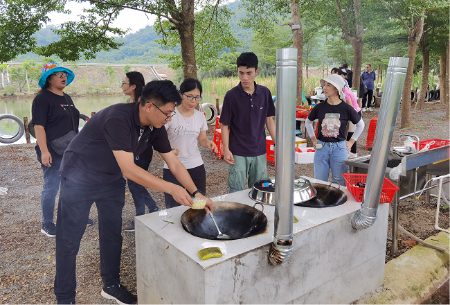 活動結束后,大家來到燒烤、野餐場地,有的生火、有的配調料,洗菜、炒菜、燒烤,忙得不亦樂乎。沒過多久,一道道香噴噴的美食就擺在了眾人面前,整個野炊燒烤現(xiàn)場洋溢著歡聲笑語,其樂融融,大家庭的氛圍濃重、愜意。