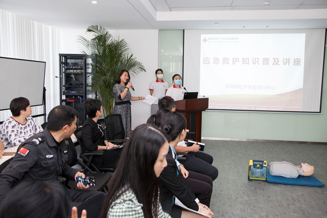 為普及應(yīng)急救護(hù)知識(shí),提高員工急救技能,有效處置突發(fā)事件,推進(jìn)應(yīng)急救援體系建設(shè),總公司工會(huì)于11月6日特邀珠海市紅十字會(huì)培訓(xùn)中心部長(zhǎng)鄭玲玲老師到公司開展應(yīng)急救護(hù)培訓(xùn)。
