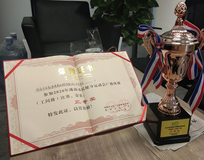 11月20日,由公司選派的體操隊(duì)代表金灣區(qū)在參加珠海市廣播體操(工間操)比賽中,喜獲三等獎(jiǎng)。