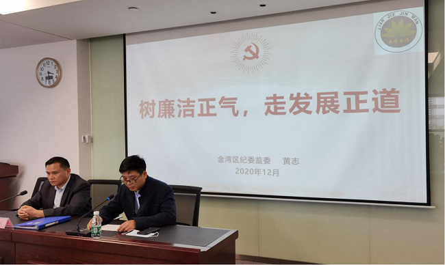 為筑牢廉潔思想防線,壓實“一崗雙責”,12月2日,聯(lián)港公司黨支部特邀請區(qū)紀委副書記、監(jiān)委副主任黃志為公司領導干部及全體黨員進行了廉政警示教育專題講座。