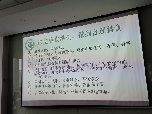 本次講座特邀珠海市人民醫(yī)院預(yù)防保健部卓鳳堅(jiān)副主任主講。講座以“心腦血管的預(yù)防及營(yíng)養(yǎng)調(diào)理”為主線,講解了高血壓、冠心病的診斷、發(fā)病的危險(xiǎn)因素、并發(fā)癥及預(yù)防心腦血管疾病相關(guān)聯(lián)的知識(shí)點(diǎn)。并從不良飲食、休息、心理帶來(lái)的危害到改變膳食結(jié)構(gòu)、合理均衡飲食、戒煙限酒、適量運(yùn)動(dòng)、心理調(diào)適等方面均做了詳細(xì)講解,闡述了遠(yuǎn)離心腦血管疾病,保證身體健康的要點(diǎn)及方法。