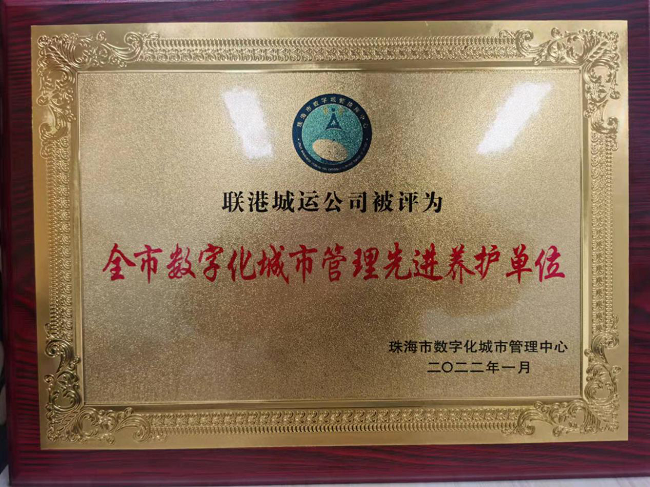 喜報(bào)!聯(lián)港城運(yùn)公司榮獲“2021年度珠海市數(shù)字化城市管理先進(jìn)養(yǎng)護(hù)單位”稱號(hào)